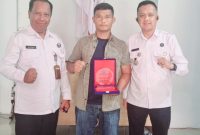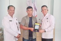 Teks. Foto : Kepala BNNK Binjai Ucok Fery Sembiring, M. H, didampingi Kasubbag Umum Suryawan diabadikan saat memberikan pelakat penghargaan P4GN kepada SMSI Ketua…